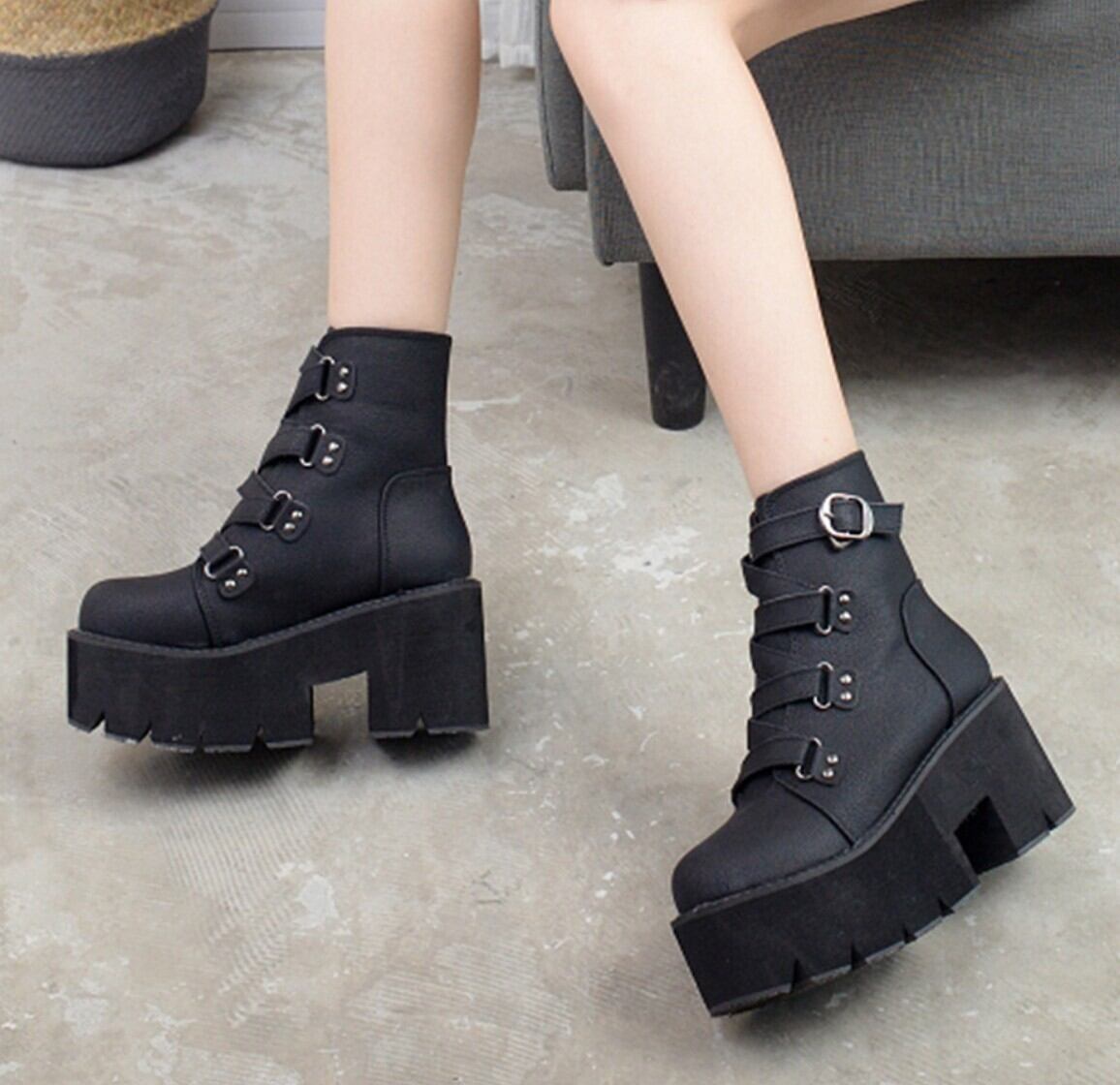 バックルベルト 厚底ショートブーツ / 韓国モード